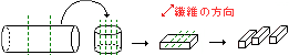 4.各先端をV字型に切りおとして出来上がり。小口から切ってゆくと、金太郎飴