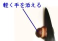 右利きの人の場合普通は右から左に向かって切ってゆきますがこれは左 から右に向かって切ってゆきます。 素材の左側に軽く手を添え包丁をねかせてそぐようにして切ります。包 丁をねかせる角度によって切り口の大きさも変わり、切り口の面積が大 きい程味がしみやすくなります。白菜・しいたけなどに。