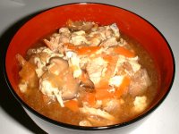 2. 材料を少量の油で炒めて水を加え、沸騰したらあくを取り除く。