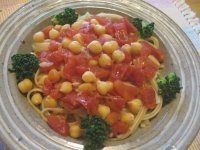 2.トマト缶、水気を切ったひよこ豆、水(トマト缶で1杯程度)、月桂樹の葉、砂糖を加えて煮る。