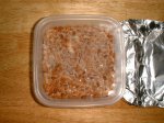 3. 容器に大豆を平らにならして入れ、ふたをする。