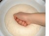 5. 生地が約2倍にふくらんだら真ん中をげんこつで押さえてガス抜きをし、さらに1〜2分手でこねる。