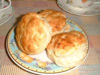 | 4. 打ち粉をふった台の上に生地をのせて軽くまとめ、2cmの厚さに手でのばす。 型で抜いてはけで残りの牛乳を塗り、オーブンで10〜15分焼く。表面がきつね色になったら出来上がり。 あったかいうちに紅茶などといっしょにどうぞ。 |