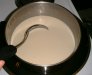 5. 絞った豆乳をかきまぜながら湯せんにかけ、70度になったら火からおろす。