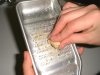 しょうが玉でおろし金の表面をぽんぽんと軽くたたきます。すると、おろし金に引っかかった繊維がくっついてきて、きれいに取り除くことが出来ます。最後にもう一度しょうが玉をまとめて絞れば、無駄なく使えます。 |