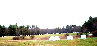 ■巨大なマシュマロが・・・ と思ったら、干草に白いカバーがかけてあるだけでした。 |