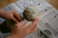| 1. トピアリー型のボール部分に木工用ボンドを塗る。 | |